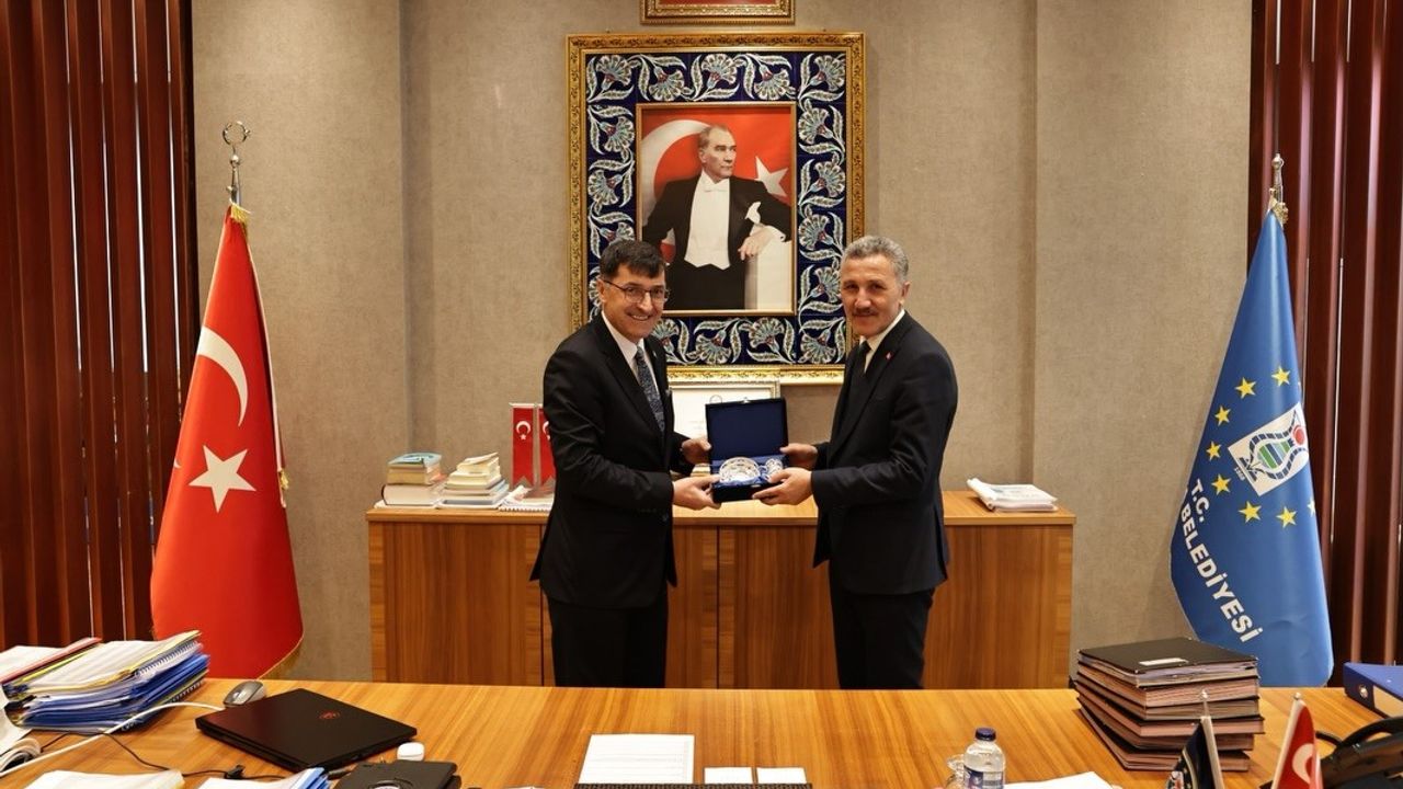 Kütahya Belediye Başkanı Eyüp Kahveci, Ordu'nun Kabadüz Belediye Başkanı Yener Kaya ve beraberindeki heyeti makamında ağırladı.