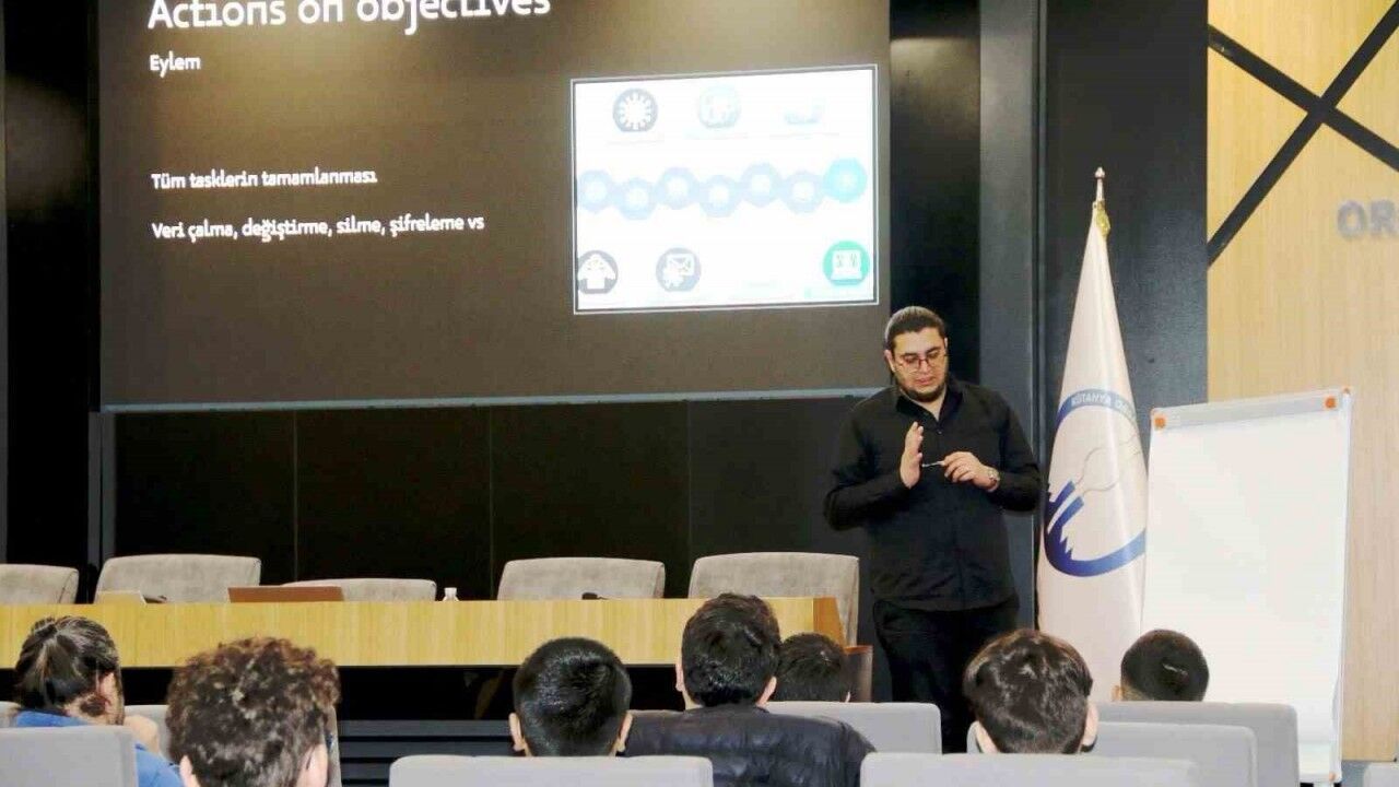 "Dijital Dünyada Siber Güvenlik" başlığıyla gerçekleştirilen eğitimin eğitmeni Furkan Şahin, katılımcılara kapsamlı bir içerik sunarak, bireysel ve kurumsal güvenlik bilincini artırmaya yönelik bilgiler paylaştı.