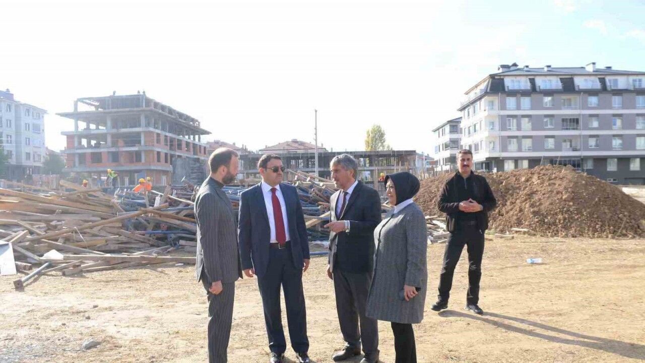 Heyet, ardından yapımı devam eden Merkez Mesleki ve Teknik Anadolu Lisesi inşaat alanında incelemelerde bulundu.