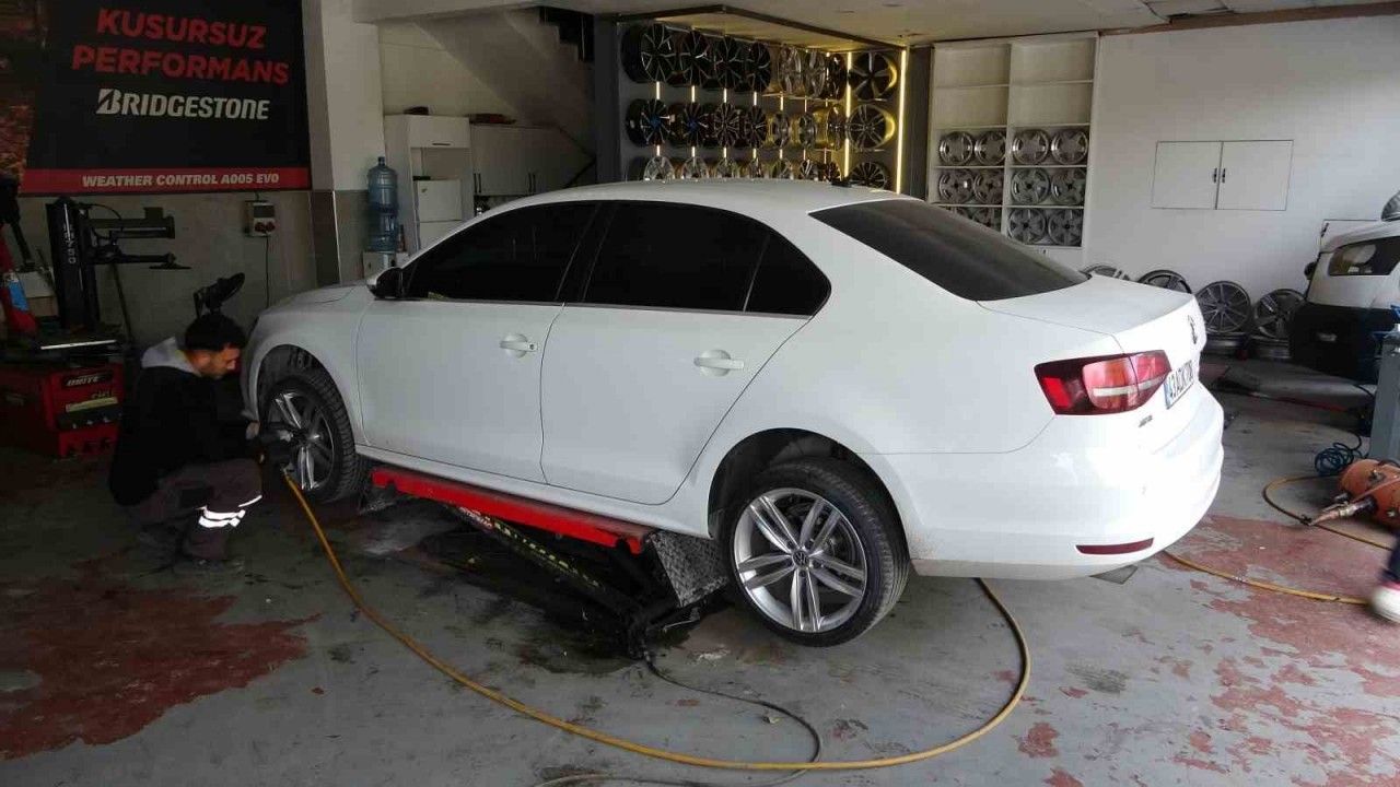 15 Kasım’dan itibaren araçlara takılması zorunlu olan kış lastikleri için Kütahya’daki tamirciler, vatandaşların isteklerini karşılamak için büyük çaba sarf ediyor. Lastik ustası Semih Yiğit, işlerin son günlerde yoğun olduğunu söyledi.