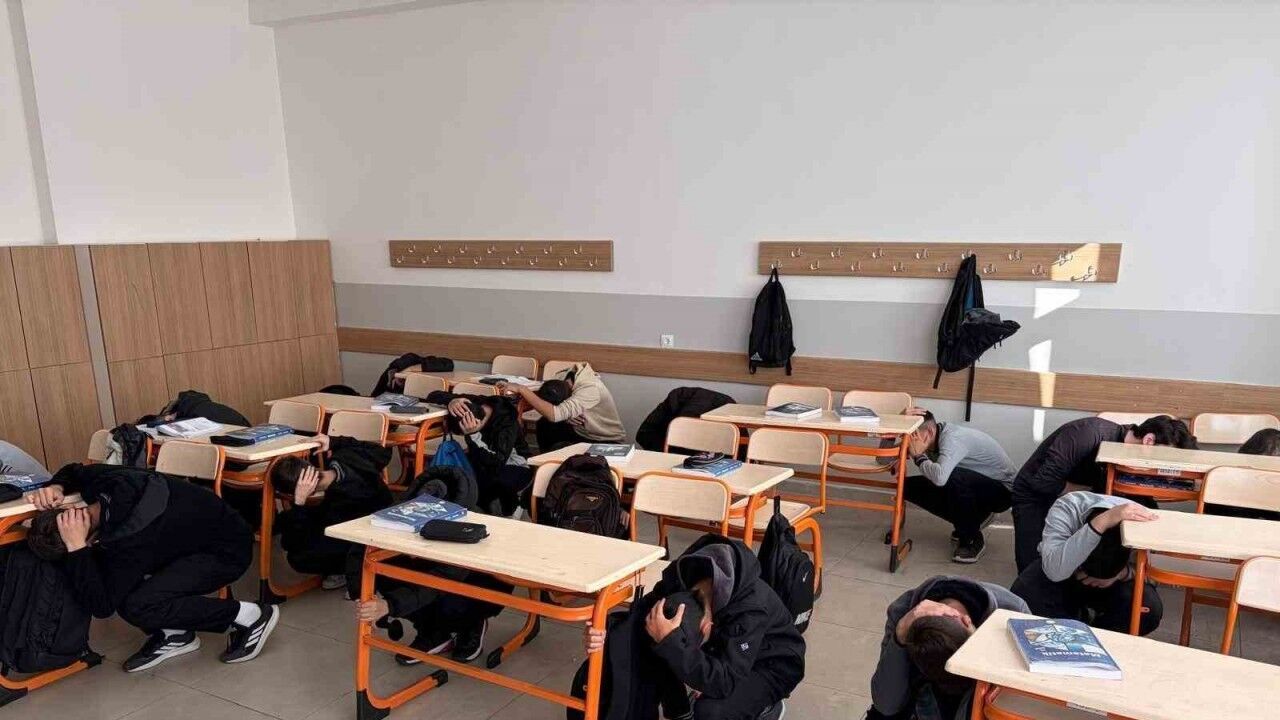 Kütahya genelindeki tüm okullarda uygulanan tatbikat senaryosu kapsamında sirenler çaldı. Öğrenciler, sınıflarında "Çök-Kapan-Tutun" hareketini yaparak kendilerini korumaya aldı. Ardından öğretmenlerinin rehberliğinde planlı ve güvenli şekilde okul binalarını tahliye ettiler.