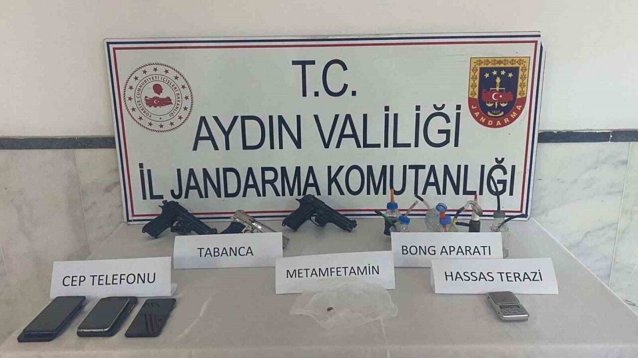 Kuyucak İlçe Jandarma Komutanlığı tarafından uyuşturucu madde imal ve ticaretine yönelik çalışma gerçekleştirildi. Başaran Mahallesi’nde "Dolandırıcılık" suçundan hakkında infaza yönelik yakalama kararı bulunan B.D. (33) isimli şahsın, S.Ö ve N.Ö. isimli şahısların evinde saklandığı ve bu evde birlikte uyuşturucu madde ticareti yaptıklarının tespit edilmesi üzerine uyuşturucu madde arama köpeği ile birlikte ikamette arama yapıldı. Yapılan aramada, 13 gram metamfetamin, 1 adet hassas terazi, 3 adet tabanca, 6 adet uyuşturucu kullanma aparatı, 5 adet cep telefonu ele geçirildi. Adli makamlara sevk edilen şahıslardan B.D. tutuklanırken, S.Ö. ve N.Ö. isimli şahıslar ise adli kontrol şartıyla serbest bırakıldı.