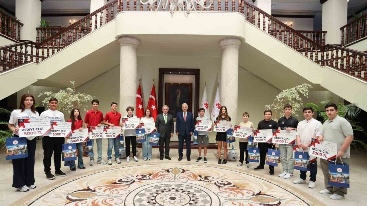 2025 Liselere Geçiş Sınavı’nda (LGS) 500 tam puan alarak Türkiye birincisi olan Bursa’daki 14 öğrenci, Vali Erol Ayyıldız’ı konuğu oldu. Makamında öğrencileri ağırlayan Ayyıldız, öğrencilere çeşitli hediyeler takdim etti.