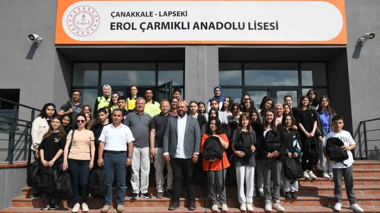 16 derslikten oluşan 540 öğrenci kapasiteli fizik, kimya ve biyoloji laboratuvarlarına sahip Erol Çarmıklı Anadolu Lisesi Konferans salonunda öğrencilere deprem çantası dağıtıldı. Konferans salonunda düzenlenen dağıtım törenine, TÜMAD Madencilik Halkla İlişkiler Müdürü Şaban Kılıçan, Lapseki İlçe Milli Eğitim Şube Müdür Murat Özkan, Okul Müdürü Abdullah Yavuz, İş Sağlığı ve Güvenliği Mühendisi Mediha İnal ve Alper Özbaş, öğretmenler ve öğrenciler katıldı.
