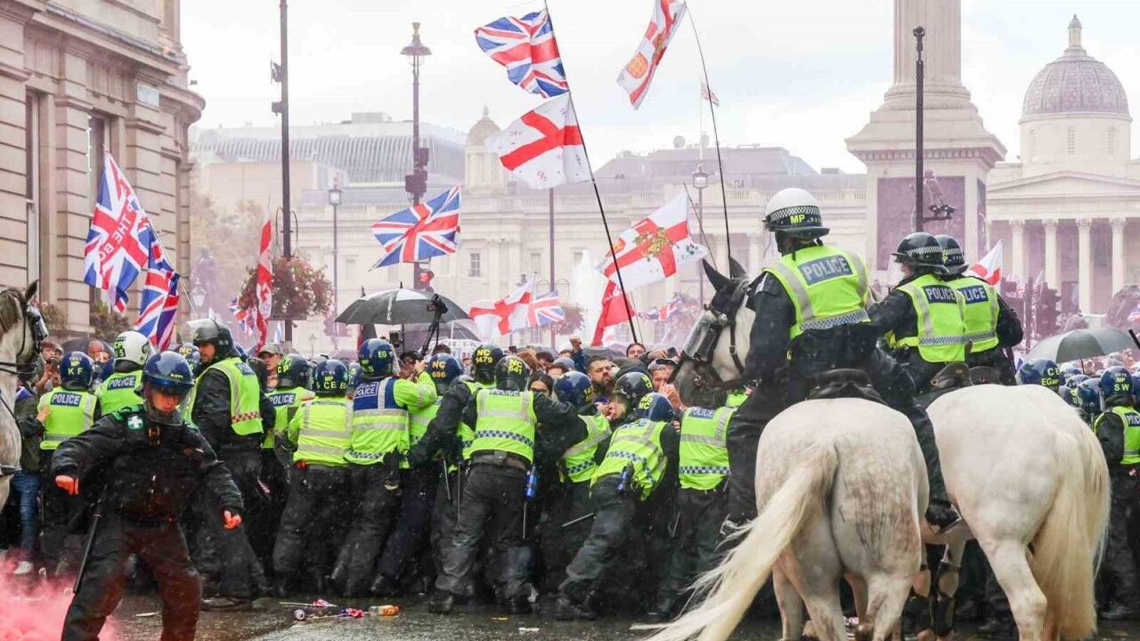 Londra’da dün gerçekleştirilen ve yaklaşık 150 bin kişinin destek verdiği göçmenlik karşıtı protestolarda göstericilerle polis arasında çıkan çatışmalarda 26 polisin yaralanırken, olayların ardından 25 kişi gözaltına alındı.