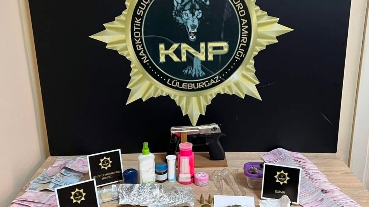İl Emniyet Müdürlüğü Narkotik Suçlarla Mücadele Şube Müdürlüğü ekiplerince uyuşturucu madde imal ve ticareti yapan şahıslara yönelik Lüleburgaz ilçesinde eş zamanlı operasyon düzenlendi. Operasyonda 12,61 gram metamfetamin, 130,98 gram sıvı sentetik kannabinoid (yaklaşık 3 kilo 994 gram sentetik kannabinoid elde edilebileceği değerlendirilen), 15,83 gram sentetik kannabinoid, 0,93 gram skunk ve 0,11 gram esrar ele geçirildi. Operasyonda ayrıca 3 adet hassas terazi, 1 adet grinder, suçtan elde edildiği değerlendirilen 42 bin 675 TL ile 5 euro, 1 adet tabanca, 2 adet tabanca fişeği ve 4 adet payp ele geçirildi.