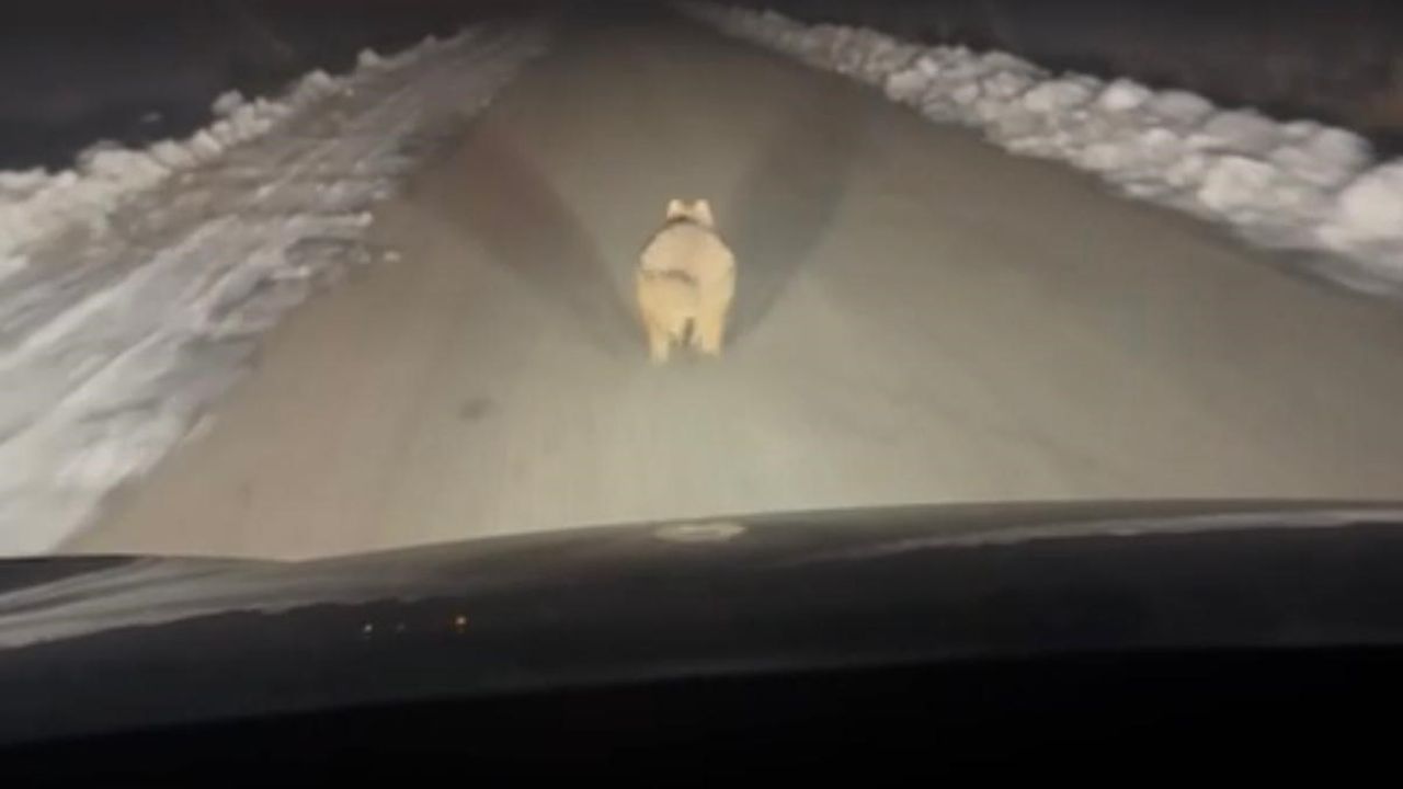 Diyarbakır'ın Çınar ilçesinde mahalleye inen bir kurt, kilometrelerce aracın önünde koşarak ilerledi.