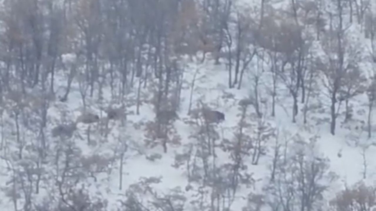 Malatya'da kar yağışı ve dondurucu soğuklar nedeniyle yiyecek bulmakta zorlanan domuz sürüleri ve kurtlar Akçadağ kırsalında görüntülendi.