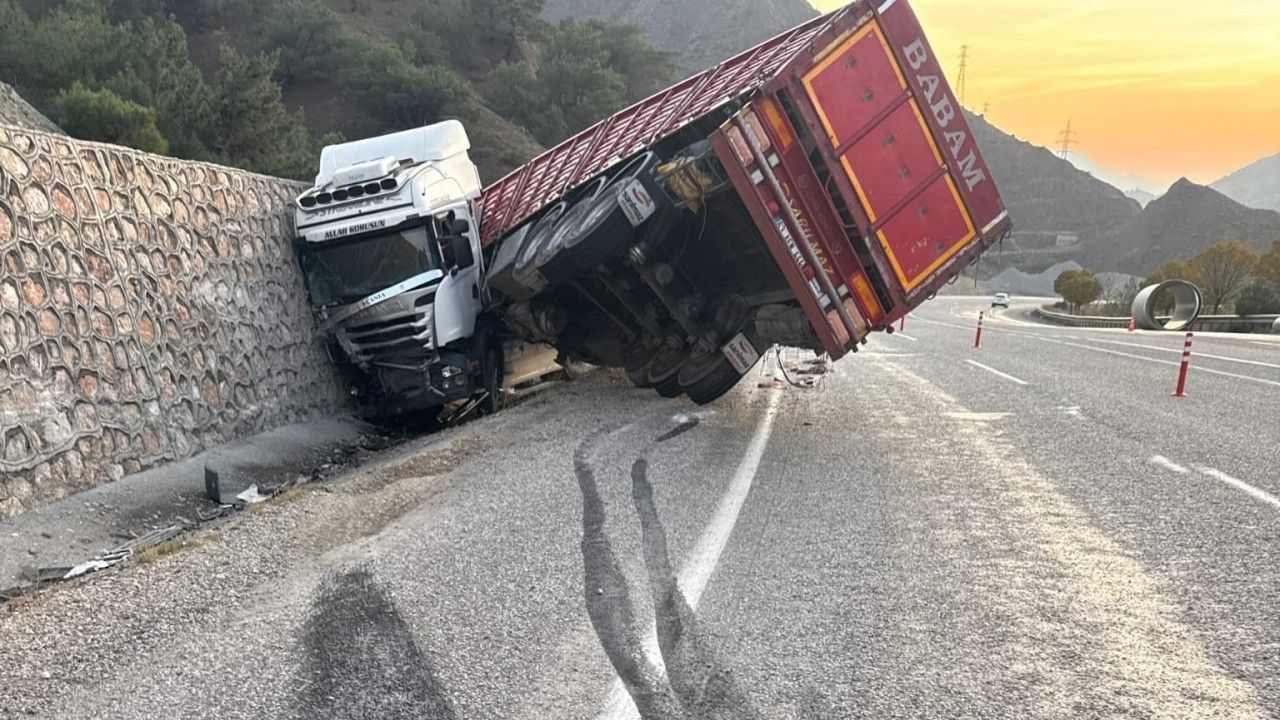 Malatya’da sürücüsünün kontrolünden çıkan tır istinat duvarına çarptı. Kazada 1 kişi yaralandı.