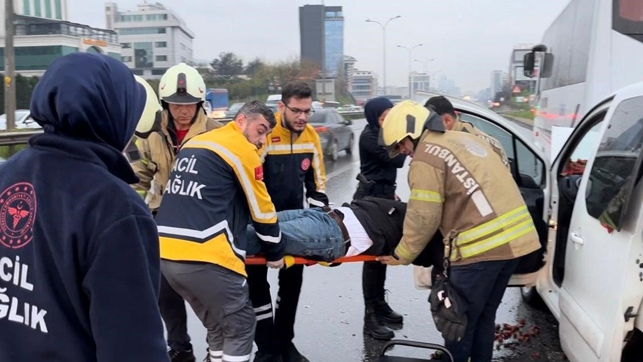 Maltepe'de hafif ticari araç, yol kenarında duraklama yapan servis minibüsüne arkadan çarptı. Kazada ticari aracın şoförü sıkışarak yaralandı.