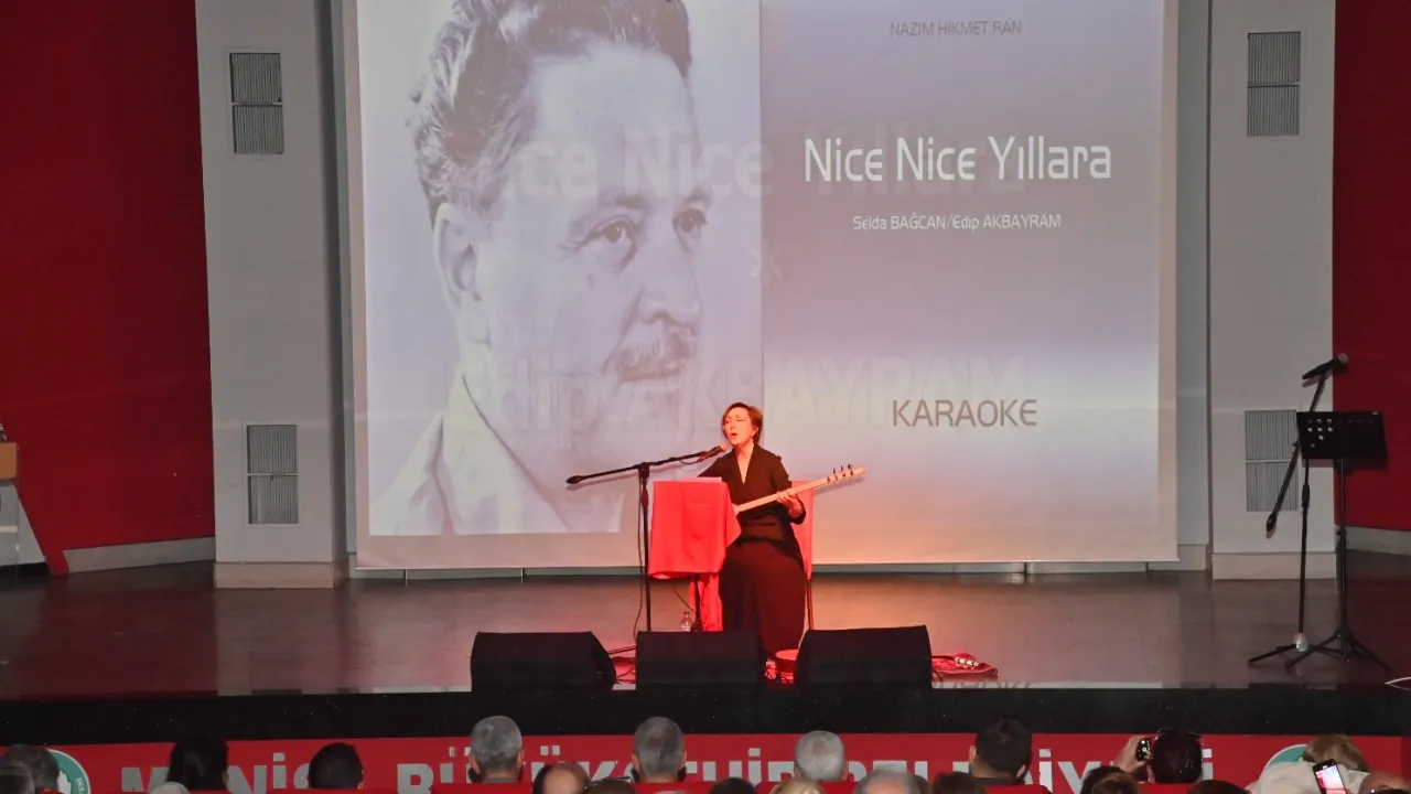 Manisa Büyükşehir Belediyesi tarafından, Nazım Hikmet Ran’ın 123. doğum yılı anısına gerçekleştirilen “Nazım’ın Şiirlerinden Besteler” programı, sanatseverleri bir araya getirdi. Gecede, Nazım Hikmet’in eserlerinden bestelenen şarkılar, solist Dilek Kızık’ın eşsiz yorumuyla seslendirildi.MANİSA (İGFA) - Kültür Merkezi Lale Salonu’nda düzenlenen etkinlikte, dünya genelinde özgürlüğü, insan sevgisini ve barışı savunan eserleriyle bilinen usta şair Nazım Hikmet’in ölümsüz dizeleri, müzikle buluştu. Dilek Kızık’ın performansı büyük beğeni toplarken program sonunda Manisa Büyükşehir Belediyesi Genel Sekreter Yardımcısı Ali Kılıç, sanatçıya çiçek ve hediye takdim ederek teşekkür etti. Etkinliğe, Genel Sekreter Yardımcısı Ali Kılıç’ın yanı sıra MASKİ Makine İkmal Daire Başkanı Murat Yılmaz, Kültür ve Sanat Şube Müdürü Okan Gündüz, Demokrat Parti İl Başkanı İdris Mecek, Yazar Bedriye Aksakal ve çok sayıda sanatsever katıldı.