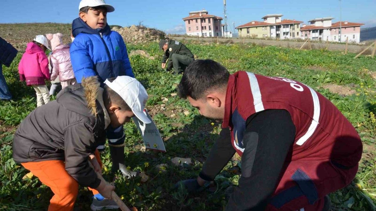 Manisa’da yanan ormanlık alanların ağaçlandırılması kapsamında yürütülen çalışmalarda 100 bininci fidan, bir özel anaokulunun minik öğrencileri tarafından toprakla buluşturuldu.