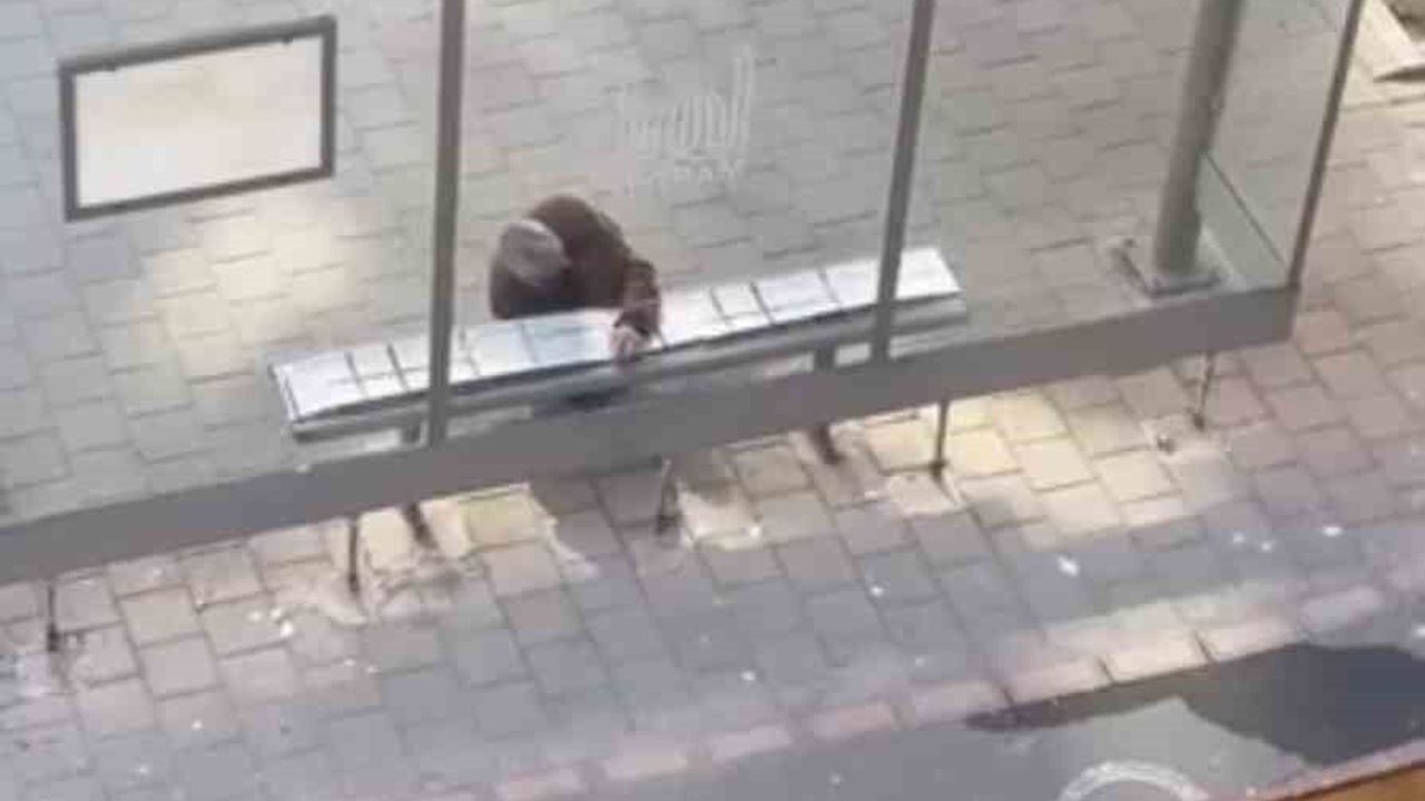 Mardin’in Midyat ilçesinde bir vatandaş, soğuk havalarda toplu taşıma durağında bekleyenlerin üşümemesi için oturma demirlerine halı kapladı. O anlar bir vatandaşın cep telefonu kamerasına yansıdı.