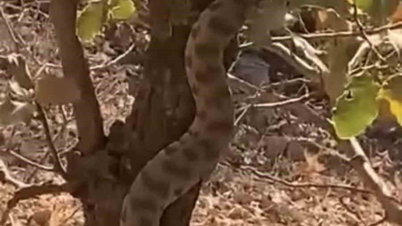 Doğada gezinti yapan bir vatandaş, ağaç gövdesine tırmanan yılanı fark etti. Yılanın engerek türü olduğunu öğrenen vatandaş, hayvanın çıkışını cep telefonu kamerası ile kaydetti. O anlar sosyal medyada yoğun ilgi gördü.