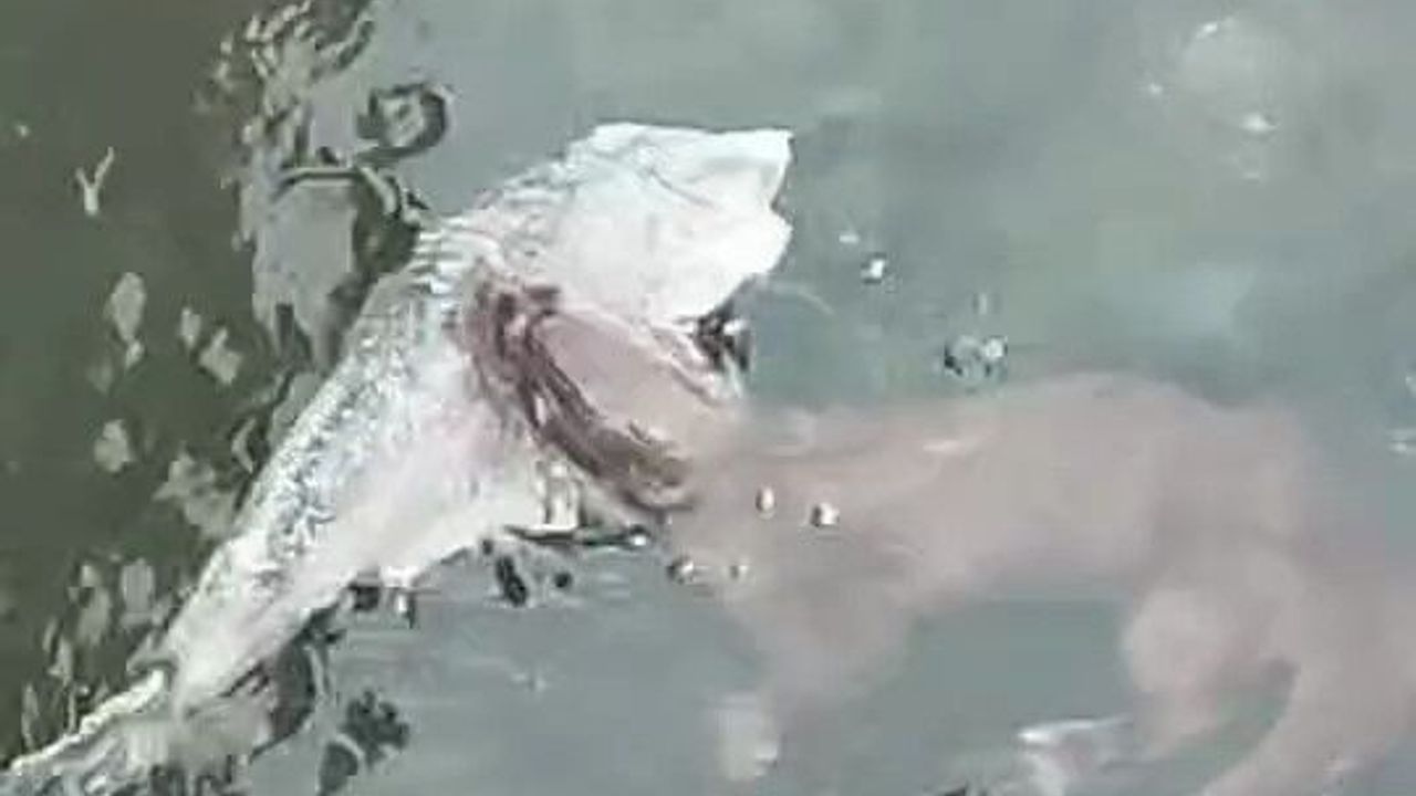 Sahil bölgesinde denize bakan vatandaşlar, suyun yüzeyinde kısa süre kalan bir su samurunu fark etti. Balık avladığı görülen su samuru, yakaladığı balığı yedikten sonra gözden kayboldu. O anlar çevredeki vatandaşlar tarafından cep telefonu kamerasıyla kaydedildi.