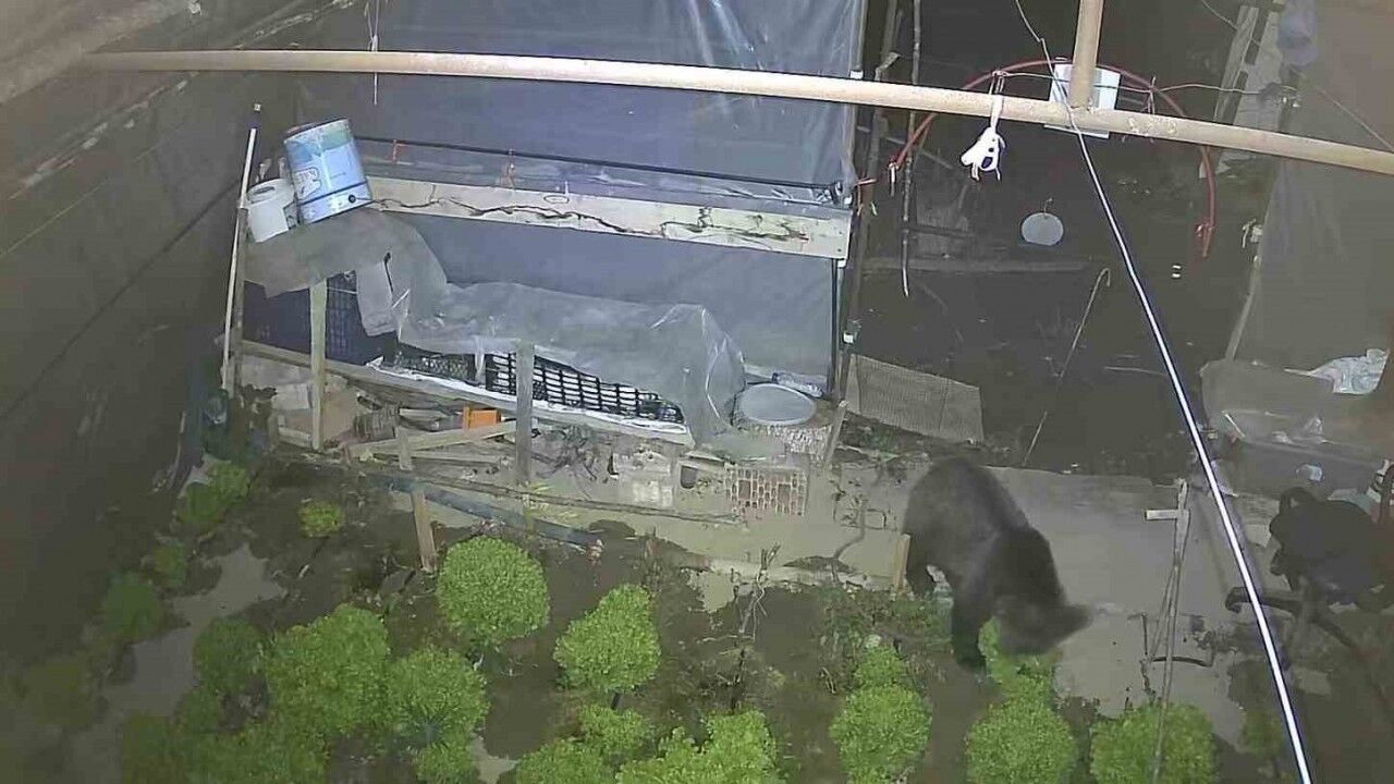 Güvenlik kamerasına yansıyan görüntülerde, yavru ayının çadırın içinde marulları yemeye başladığı ve ardından kapalı olan kapıdan tırmanarak geri gidiyor. Mahalle sakinleri ise bölgede sık sık ayı görülmeye başlandığını belirterek yetkililerden önlem alınmasını istedi.