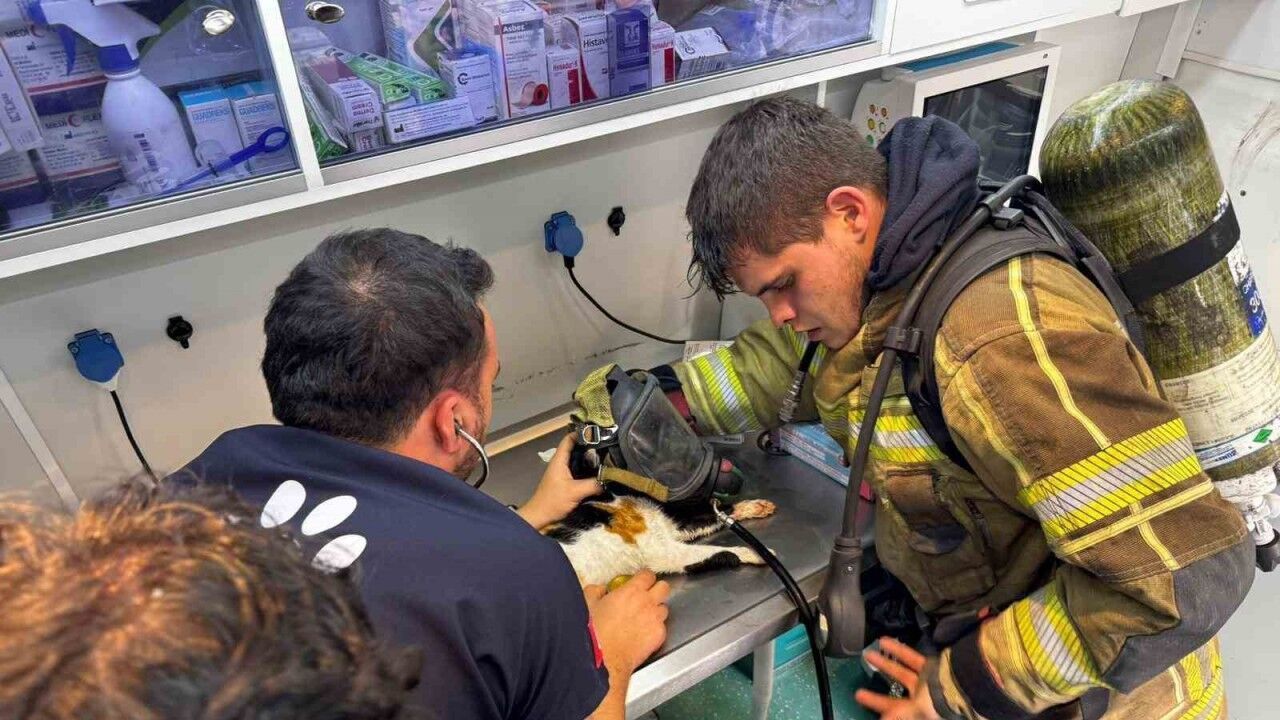 İtfaiye ekipleri ev yangınında iki kedi kurtardı