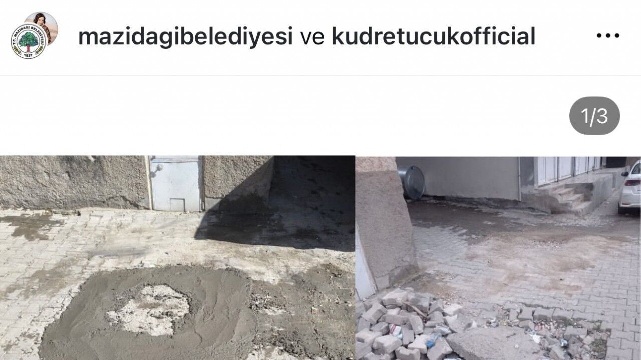 Mardin’in Mazıdağı ilçesinin DEM Partili Belediyesi, ilçe merkezinde bir sokakta bozuk olan bir metrekarelik alana beton döküp onardıktan sonra, dev hizmet sunmuş gibi sosyal medyada paylaştı. Paylaşımı gören vatandaşlar, tepki gösterdi.