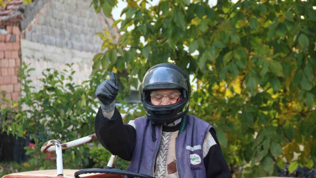 Eskişehir’de yaşayan 67 yaşındaki çiftçi yeni yönetmeliğe uygun şekilde kask, koruyucu gözlük ve eldiveni takıp, traktörü ile tarlasını sürdü. Çiftçi Mehmet Son, "Bütün bu işleri kafamızda kask varken yapacağız. Herhangi bir zarara karşı kask bizi koruyacak" dedi.