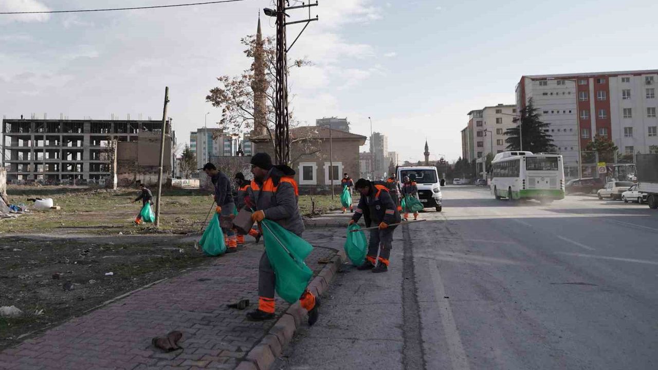 Melikgazi'de gece itibariyle şiddetlenen rüzgarın etkisiyle cadde ve sokaklarda biriken çöpler, ağaç dalları ve kirlenen alanlar Melikgazi Belediyesi Temizlik İşleri Müdürlüğü ekiplerince temizlendi.