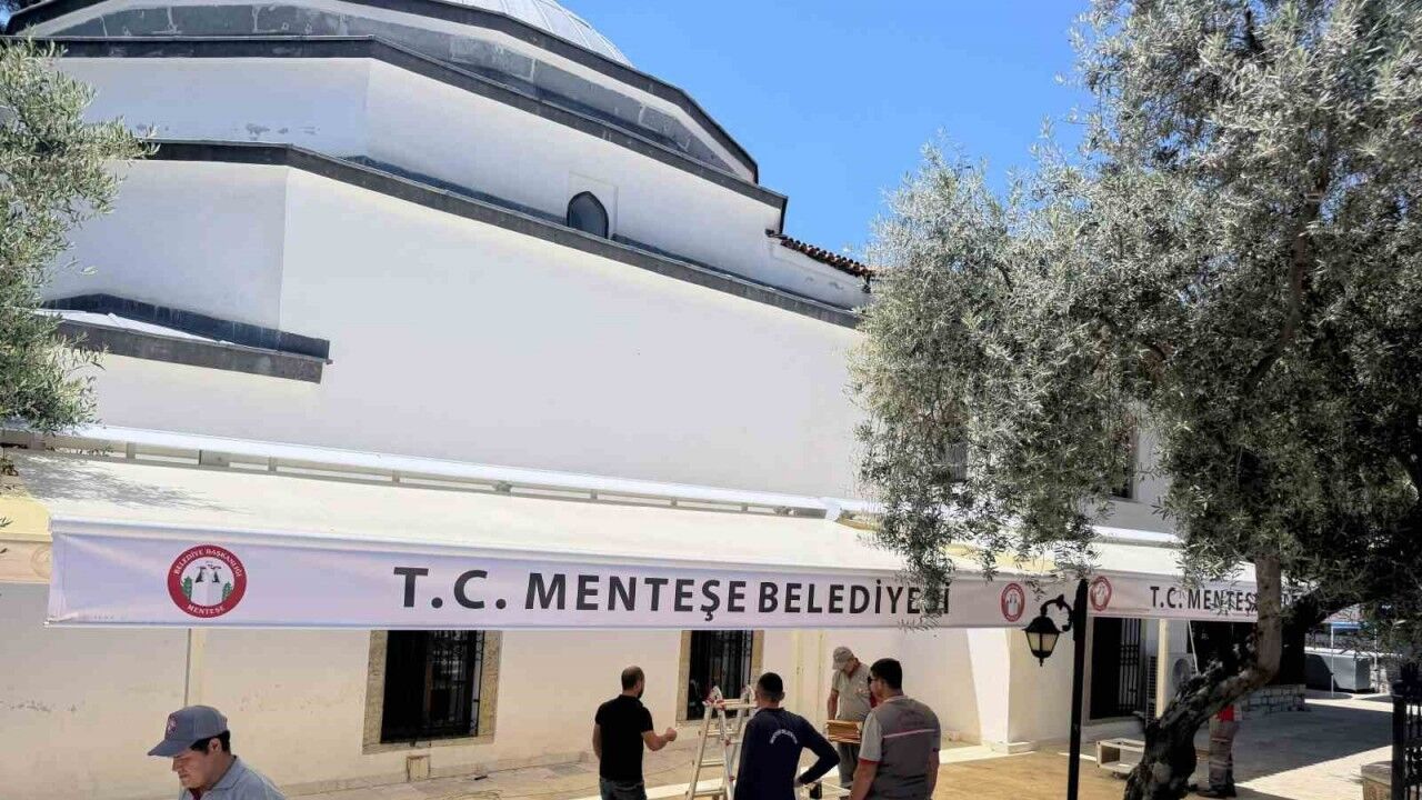 Eskiyen tentenin yerine yeni tente talebini Menteşe Belediyesine ileten vatandaşların bu talebi Menteşe Belediyesi tarafından yerine getirildi. Cami avlusuna yeni bir gölgelik tente sistemi kuruldu. Açılır-kapanır mafsallı yapıdaki 12 metreye 5 metre ölçülerindeki tente, yaz aylarında güneşin kışın ise yağmurun etkisini azaltacak.
