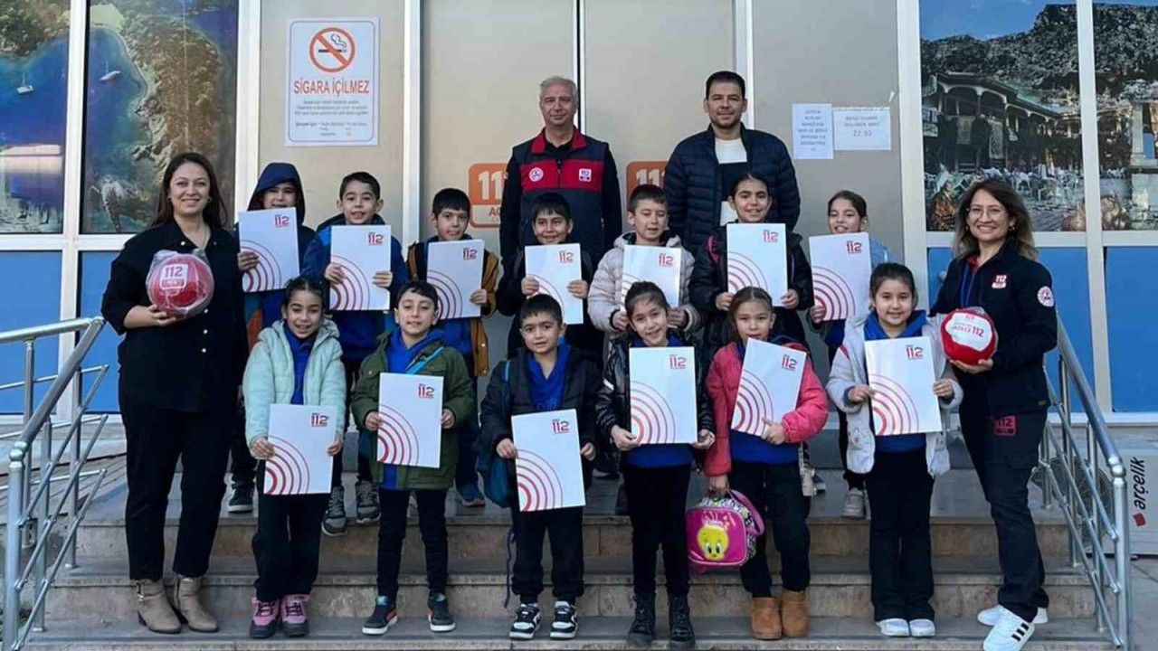 Muğla’nın Menteşe ilçesindeki Yenice İlkokulu öğrencileri, 112 Acil Çağrı Merkezini ziyaret etti. Ziyaret kapsamında öğrencilere 112 çizgi filmi izletilerek ve ‘112 Tek Numara’ farkındalık eğitimi verildi. Öğrencilere acil durumlarda doğru çağrı yapmanın önemi anlatıldı.