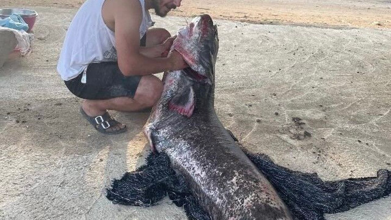 Edirne’de Türkiye-Yunanistan sınırını oluşturan Meriç Nehri’nde, 73 kilogram ağırlığında dev bir yayın balığı yakalandı.