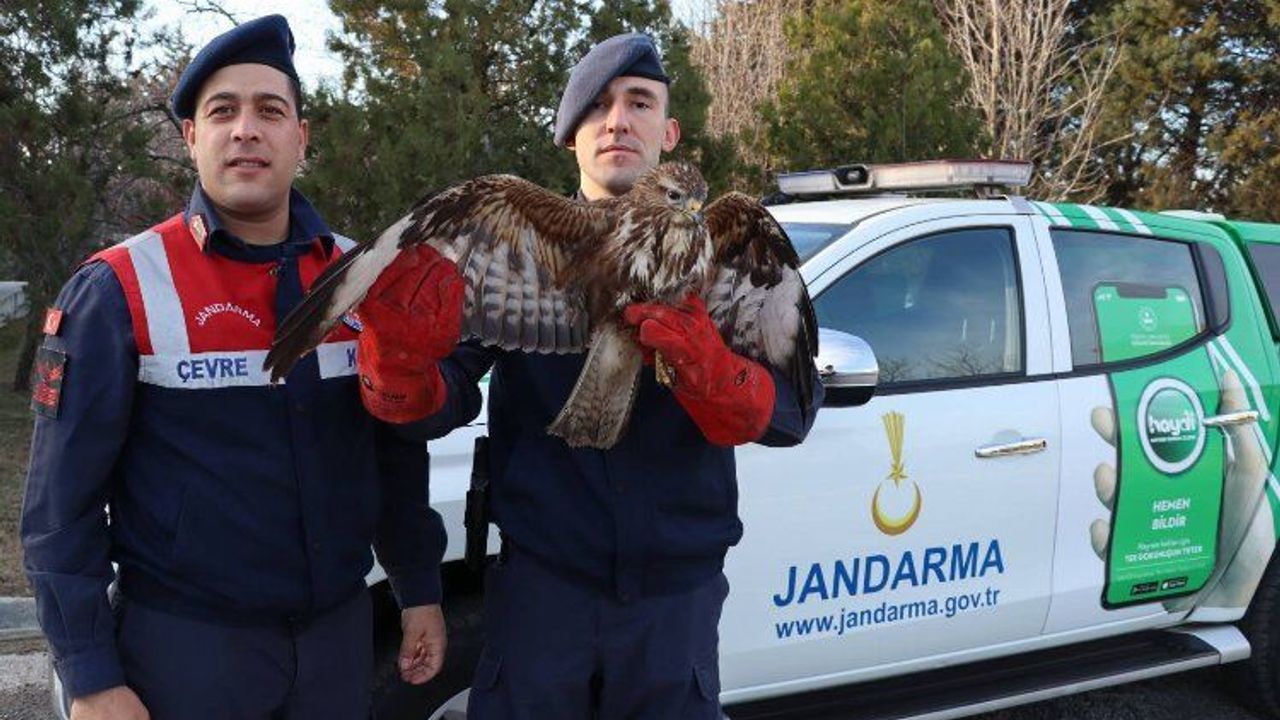 Erdoğan DEMİR / EDİRNE (İGFA) - Edirne İl Jandarma Komutanlığı Çevre Doğa ve Hayvanları Koruma Timi, Meriç ilçesi kırsalında bitkin halde bulunan bir şahin kuşunu kurtardı.