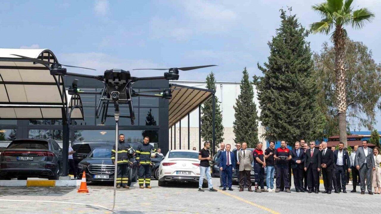 Mersin-Tarsus Organize Sanayi Bölgesi’nde (MTOSB) hizmete giren ’Cesur-III’ adlı ’Yangın Müdahale İnsansız Hava Aracı’nın tanıtımı yapıldı.