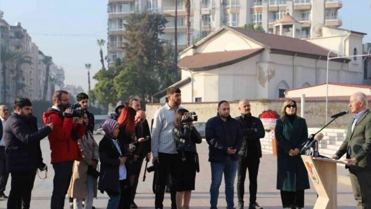 Cumhuriyet Meydanında gerçekleştirilen törene Akdeniz Belediye Başkanı Mustafa Gültak, Mezitli Belediye Başkanı Neşet Tarhan, MGC Başkanı Kaya Tepe ile gazeteciler katıldı. Saygı duruşu ve İstiklal Marşının okunmasıyla başlayan törende MGC Başkanı Kaya Tepe çelenk sundu.