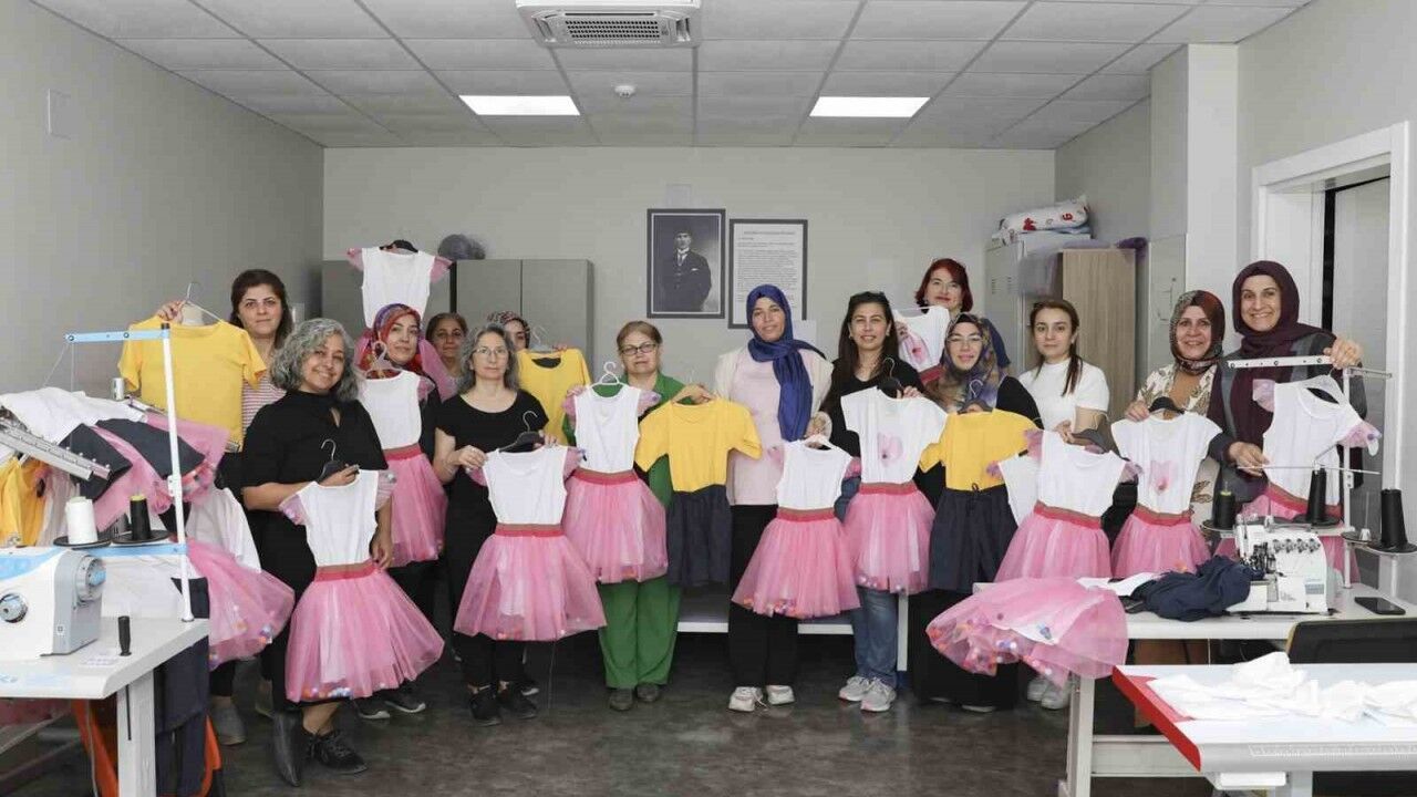 Mersin Büyükşehir Belediyesinin Yenişehir MERCEK’teki dikiş kursu kursiyerleri, 23 Nisan Ulusal Egemenlik ve Çocuk Bayramına özel birbirinden güzel çocuk kıyafetleri dikti.
