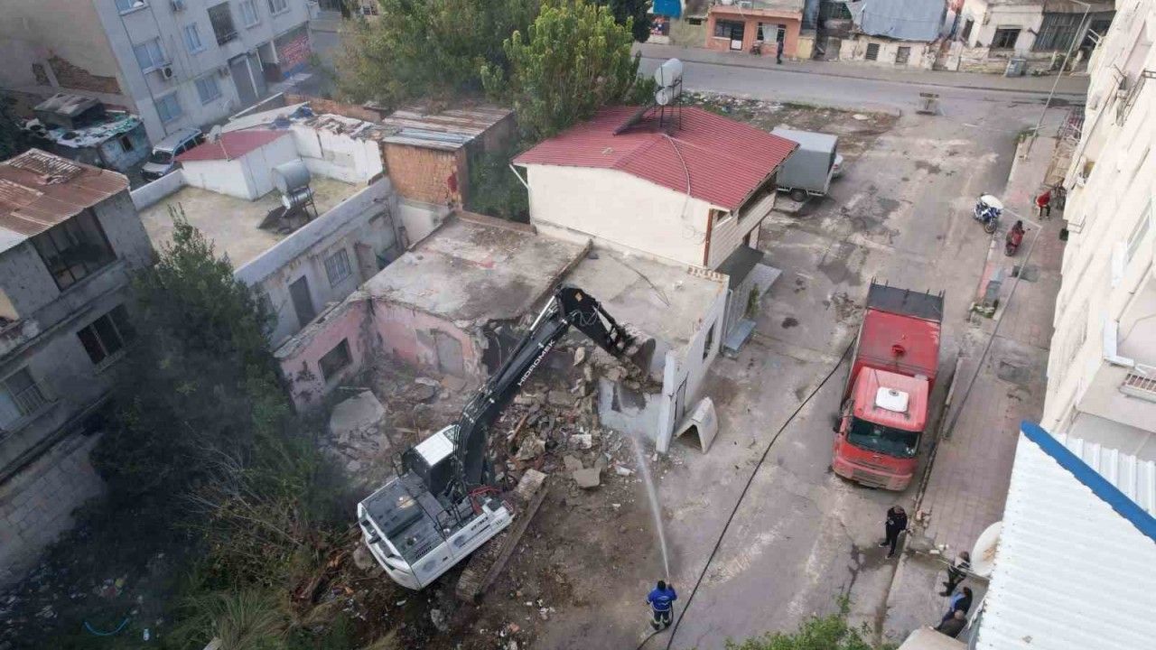 Sahiplerince terk edilen ve zamanla harabeye dönüşen, kimi zaman da sosyal sorunlara yol açan metruk yapılarla mücadelesini sürdüren Akdeniz Belediyesi Fen İşleri Müdürlüğü ekipleri, bu kez Mersin AFAD tarafından ağır hasarlı olduğu tespit edilen, bu nedenle vatandaşların can ve mal güvenliğini tehdit eden tek katlı binanın kontrollü yıkımı için harekete geçti.