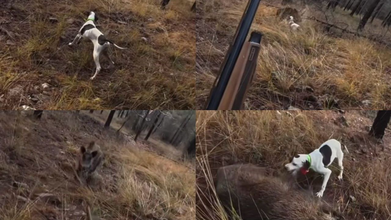 Avcı Öncüt'ün kask kamerasına yansıyan görüntülerde, köpeğin çalılık alanda ferma vermesi, hemen ardından yaban domuzunun aniden ortaya çıkarak koşması ve avcının panik içinde ateş açtığı anlar yer aldı.