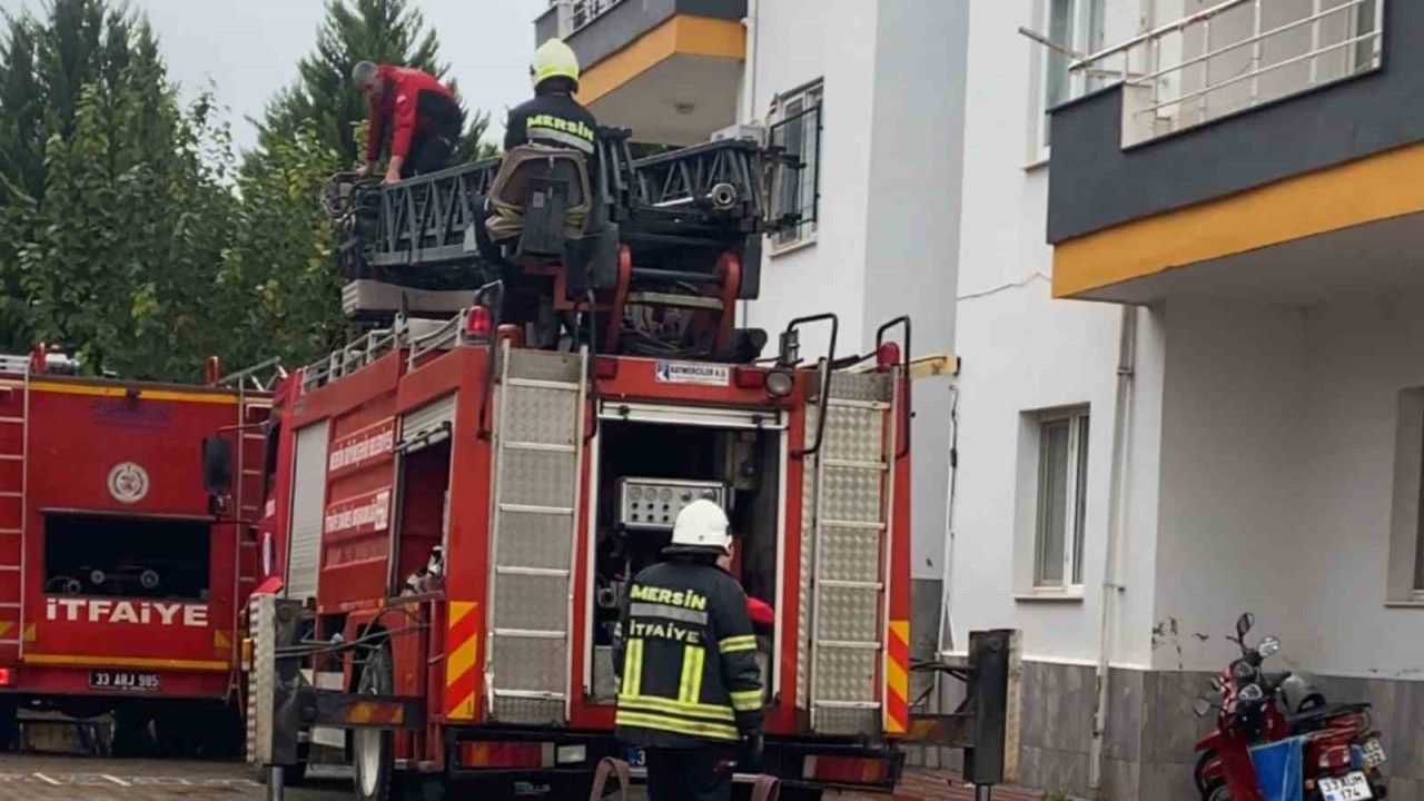 İlk yangın, Erdemli ilçesinde bağlı Alata Mahallesi Kalfe Sokak yakınlarında bir apartmanın 4. katında çıktı. Alınan bilgiye göre, N.Ö. ‘ye ait evdeki dumanları fark eden apartman sakinleri, durumu itfaiye ekiplerine bildirdi. Bunun üzerine bölgeye 2 itfaiye ile sağlık, polis ve doğalgaz ekipleri sevk edildi. Ekiplerin müdahalesiyle yangın söndürülürken maddi hasar oluştu.