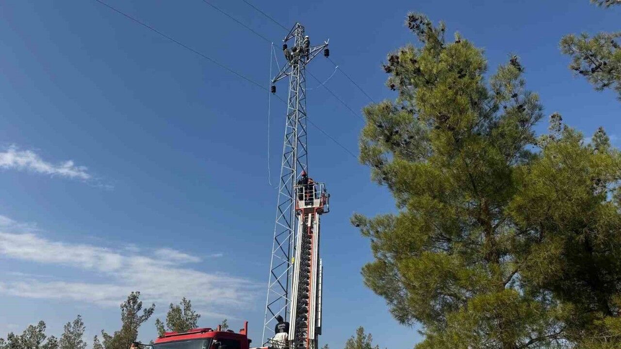 Mersin’de yüksek gerilim hattı çalışması sırasında 25 metre yükseklikteki direkte mahsur kalan bir işçi, itfaiyenin müdahalesiyle kurtarıldı.