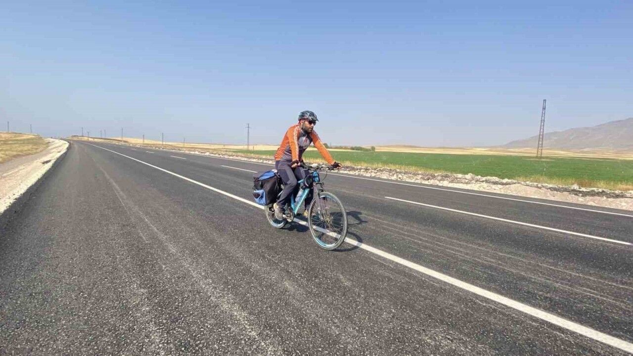 BİTLİS (İHA) – Mersinli bisikletçi, Van Gölü’ne dikkat çekmek için çevresinde pedal çevirdi.
