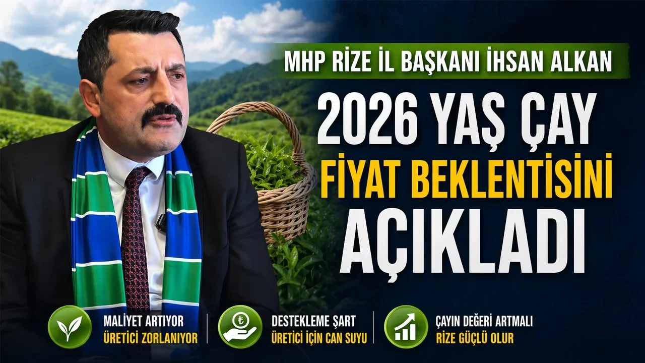 MHP Rize İl Başkanı İhsan Alkan, düzenlediği basın toplantısında 2026 yılı yaş çay kampanya dönemi öncesinde üreticinin beklentilerini ve maliyet analizlerini kamuoyuyla paylaştı. Alkan, artan maliyetler karşısında çay üreticisinin refahı için destekleme hariç 35 TL fiyat talebinde bulundu.