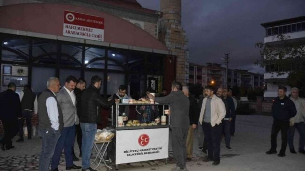 Balıkesir Milliyetçi Hareket Partisi İl Başkanlığı sabah namazı buluşmalarına devam ediyor. Hafız Mehmet Arabacıoğlu Camii’nde cemaatle buluşan MHP Balıkesir İl Başkanlığı sabah namazına gelen cami cemaatine sıcak çorba ikramında bulundu.