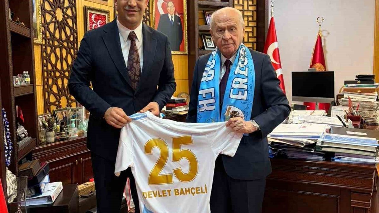 2025-2026 sezonu 1. Lig mücadelesinde, ligin bitimine iki hafta kala matematiksel olarak Süper Lig'e çıkmayı garantileyen Erzurumspor FK, Ankara'da gündem oldu. Başkent'te gerçekleşen ziyarette İl Başkanı Adem Yurdagül, Genel Başkan Bahçeli'ye kulübün sembolü olan mavi-beyazlı atkı ve Erzurum'un plaka kodu olan 25 numaralı formayı hediye etti.
