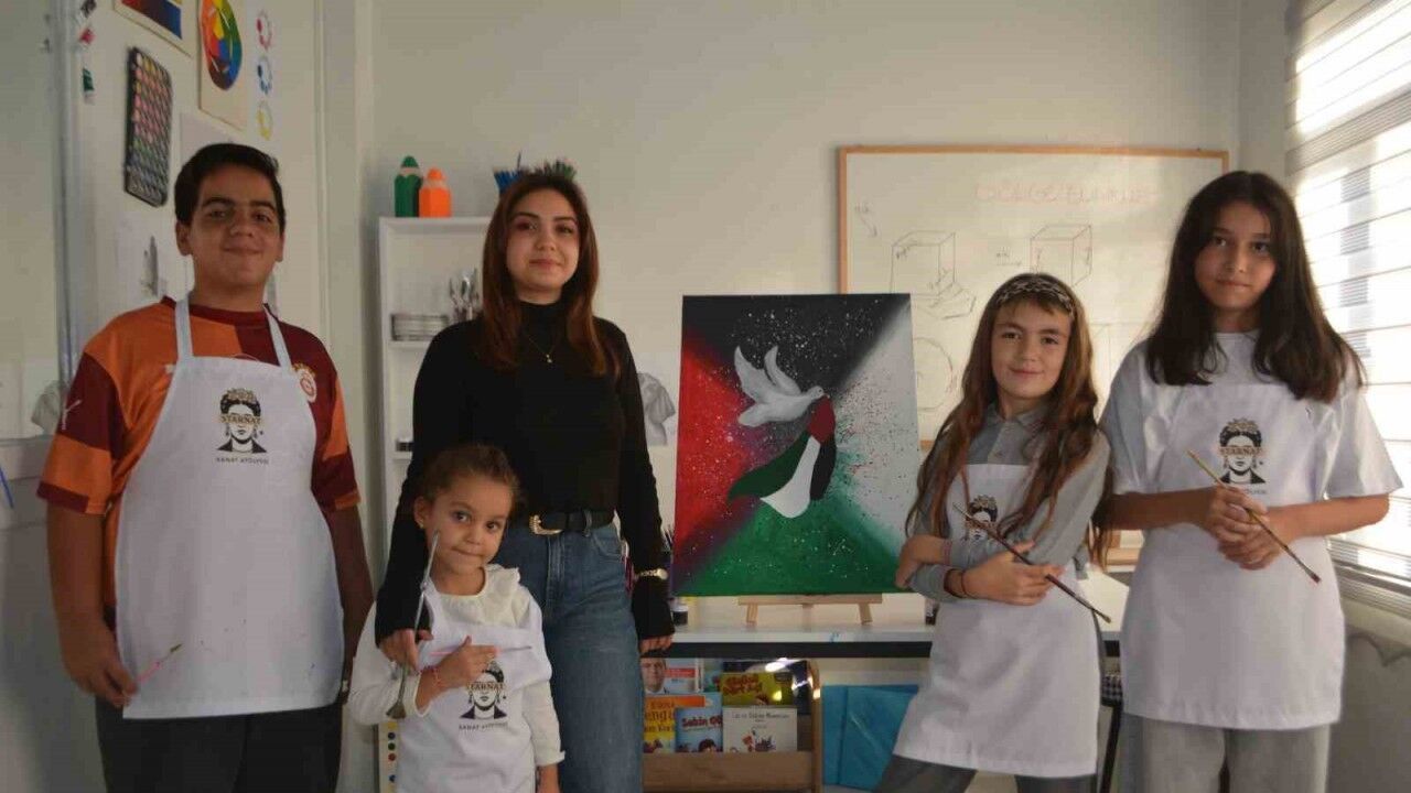 Minik yüreklerin genç öğretmeni Nursima Yıldız ise, "Burada öğrencilerimle birlikte; Gazzeli çocuklar için Filistin’de yaşanılan insanlık dramıyla ilgili bir çalışma yaptık. Tuvalimize yansıttığımız beyaz güvercinle dünyaya en iyi bildiğimiz dil olan resim ile bir barış mesajı göndermeye çalıştık" dedi.