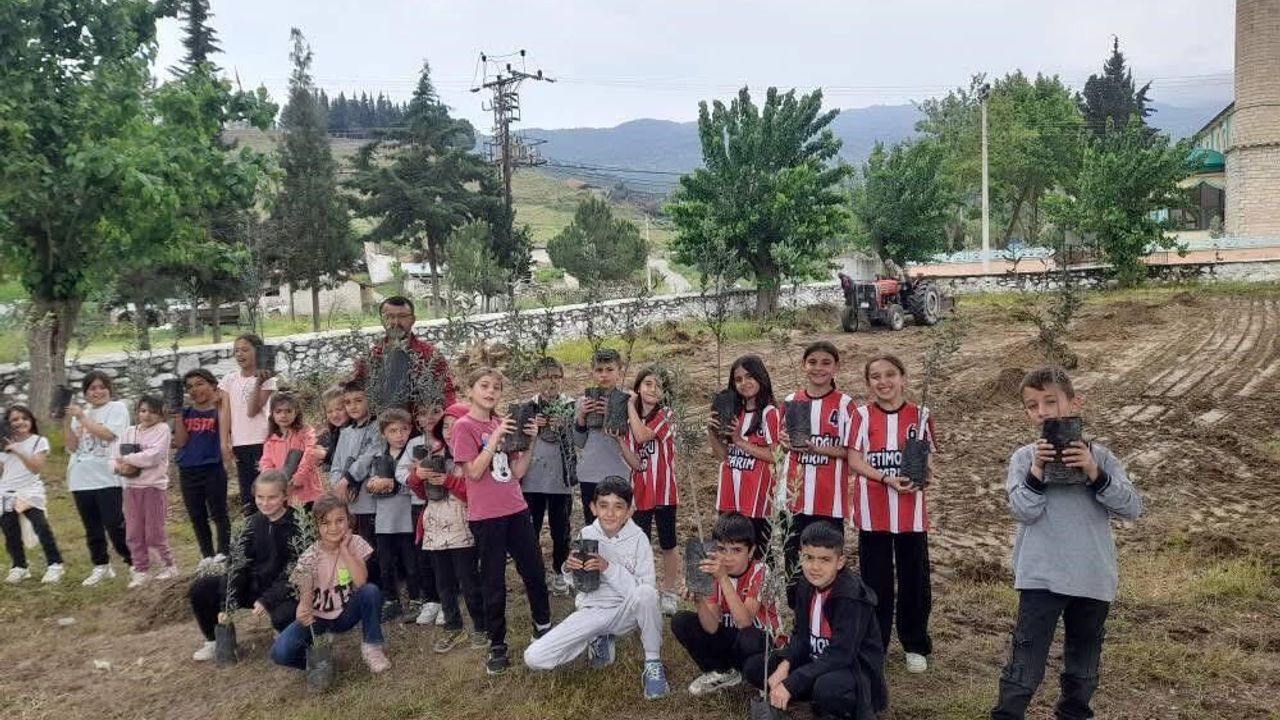 Manisa’nın Sarıgöl ilçesinin Sığırtmaçlı ilkokulu bahçesine öğretmen ve öğrencilerle birlikte Tirilye türü zeytin dikimi yaptı.