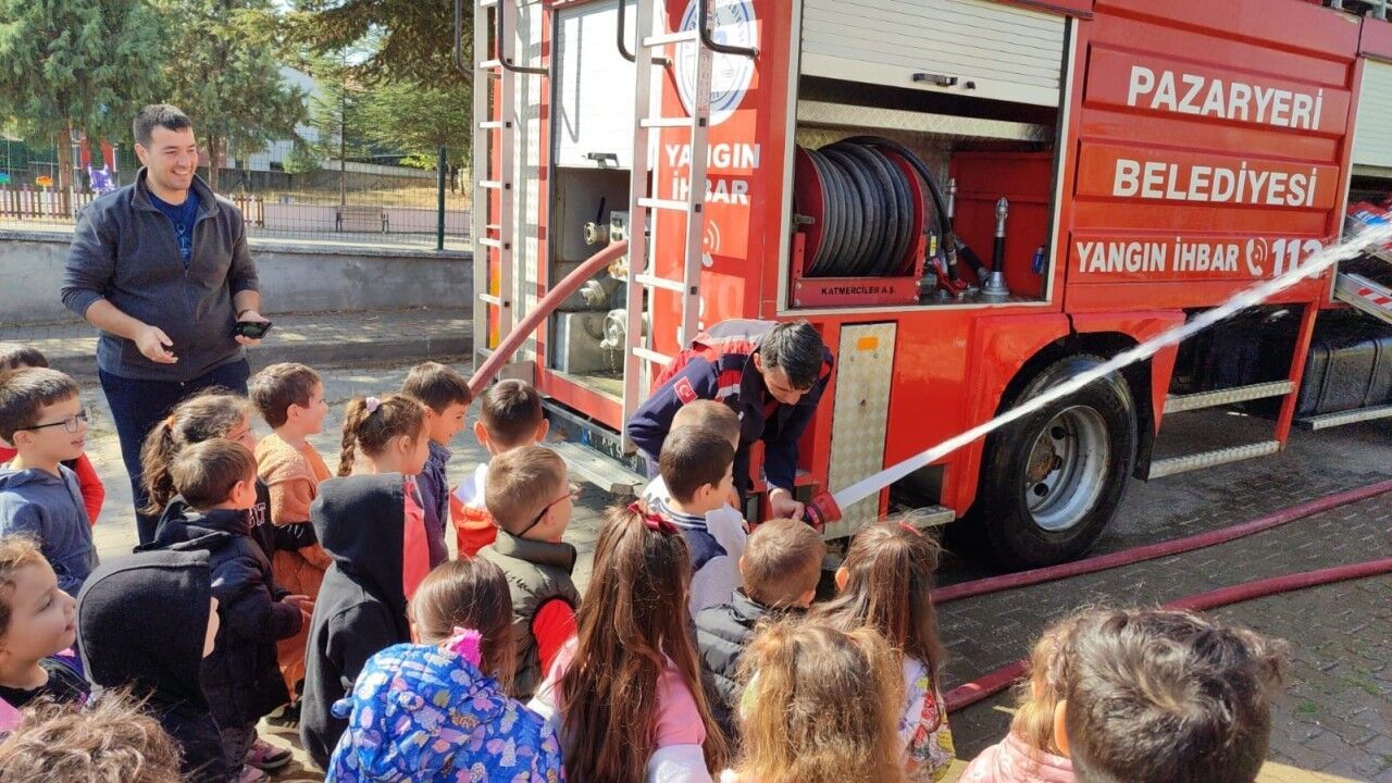 Bilecik’in Pazaryeri ilçesinde anaokulu öğrencileri, İtfaiye Haftası kapsamında düzenlenen etkinlikle hem eğlendi hem öğrendi.