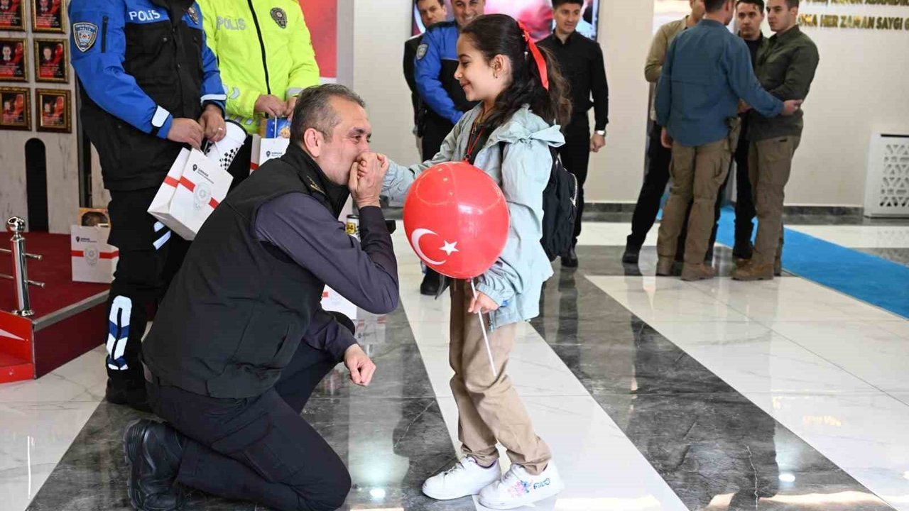 Şırnak'ta minik öğrenciler, ellerinde çiçeklerle Şırnak İl Emniyet Müdürlüğü'nün yolunu tutarak, 'Volkan amca' diye seslendikleri Emniyet Müdürünün ve personelin Polis Haftasını kutladı.