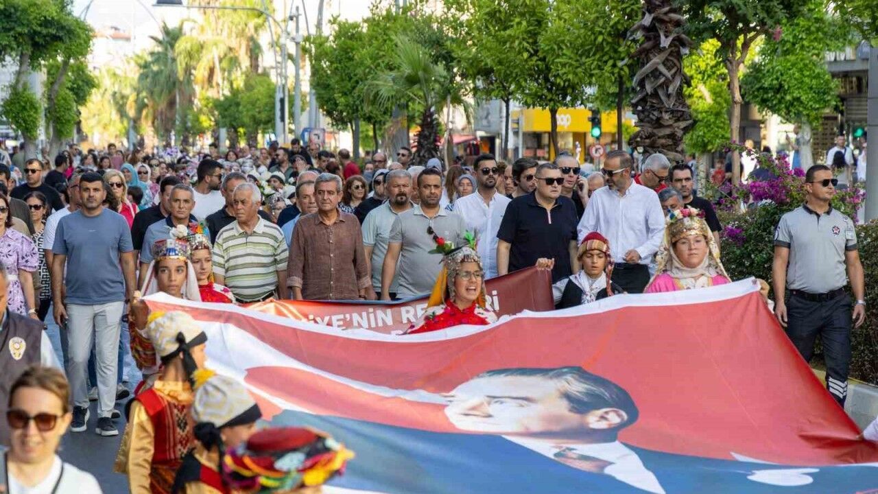 Manavgat Atatürk Kültür Merkezi’nde toplanan halk oyunları ekipleri, geleneksel kıyafetleriyle Cumhuriyet Meydanı’na kadar kortej yürüyüşü gerçekleştirdi. Yürüyüşe belediye başkan yardımcıları, meclis üyeleri, muhtarlar, sivil toplum kuruluşu temsilcileri, oda başkanları ve vatandaşlar da katıldı. Renkli görüntülere sahne olan etkinlikte Manavgat sokakları adeta kültür geçidine dönüştü.