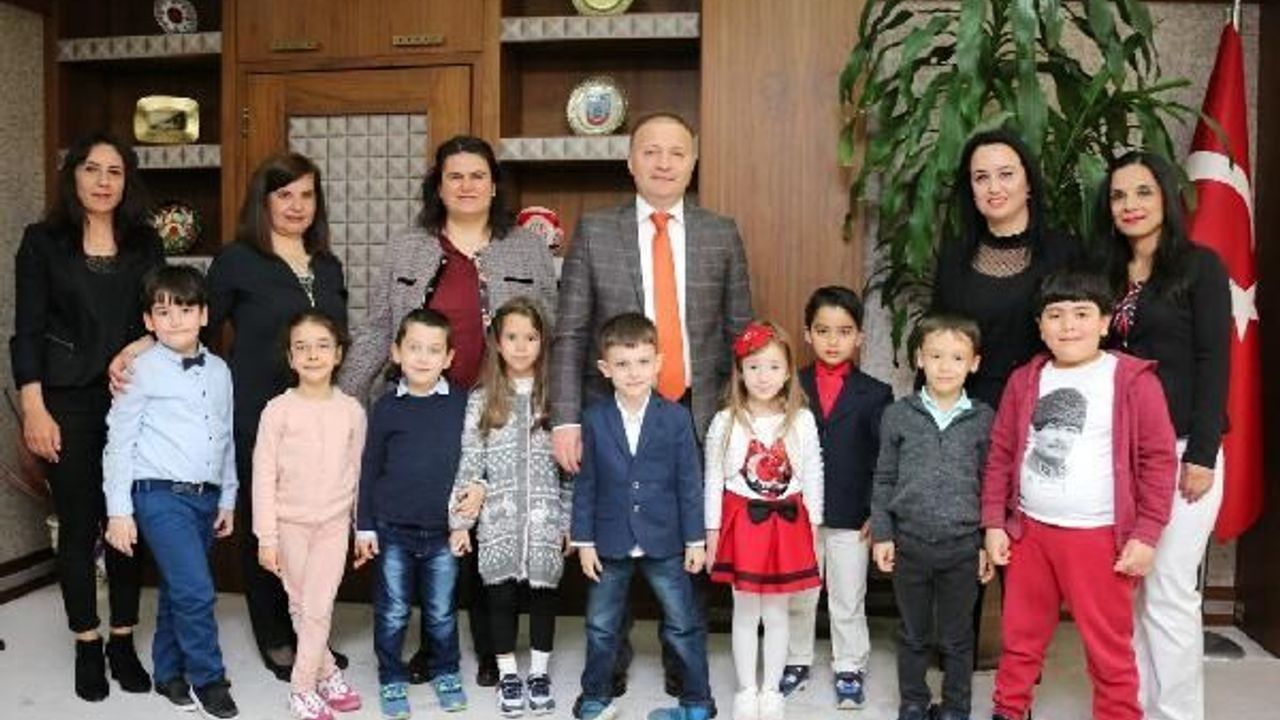 ANTALYA, () - AKDENİZ Üniversitesi kampüsünde yer alan 75. Yıl Kreş ve Çocuk Kulübü öğrencileri, 23 Nisan Ulusal Egemenlik ve Çocuk Bayramı dolayısıyla Akdeniz Üniversitesi Rektörü Prof. Dr. Mustafa Ünal'ı makamında ziyaret etti.
