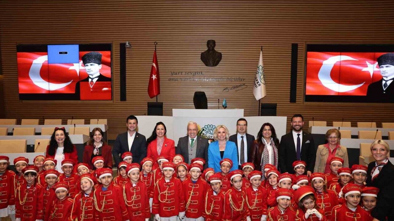 Anaokulu öğrencileri 23 Nisan Ulusal Egemenlik ve Çocuk Bayramı için hazırladıkları gösterileri, Nilüfer Belediye Başkanı Şadi Özdemir’i ziyaretlerinde sergiledi.