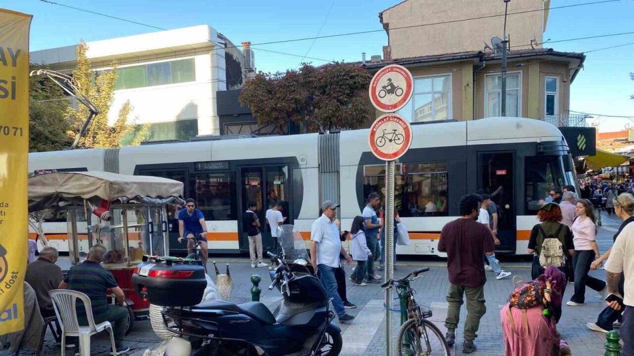 Kentin en işlek noktalarından birisi olan İki Eylül Caddesi’nin girişlerinde ‘motosiklet giremez’ ve ‘bisiklet giremez’ levhaları yer alıyor. Çoğu zaman idari bir yaptırım uygulanmaması sebebiyle vatandaşlar bu kuralları dikkate almıyor. İki Eylül Caddesi ve Ertuğrul Bey Sokak’ın kesişiminde de uyarı levhalarının tam altına park edilen motosiklet ve direğe bağlanan bisiklet, trajikomik bir kare oluşturdu. Ortaya çıkan ilginç görüntü, uyarı levhalarının tek başına ne kadar işlevsiz kaldığını gözler önüne serdi.