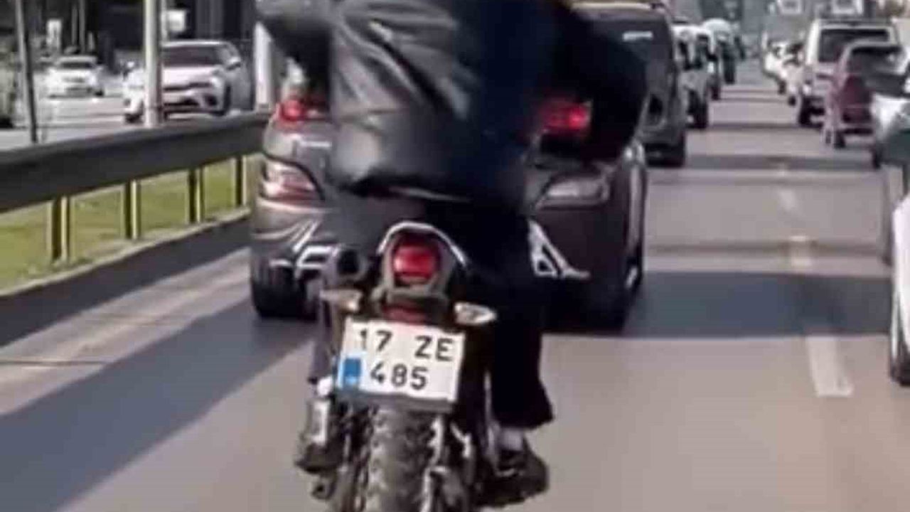 Bursa’da seyir halindeki bir sürücü motosikletini ata biner gibi sürdü. Trafiği tehlikeye düşüren o anlar kameraya yansıdı.
