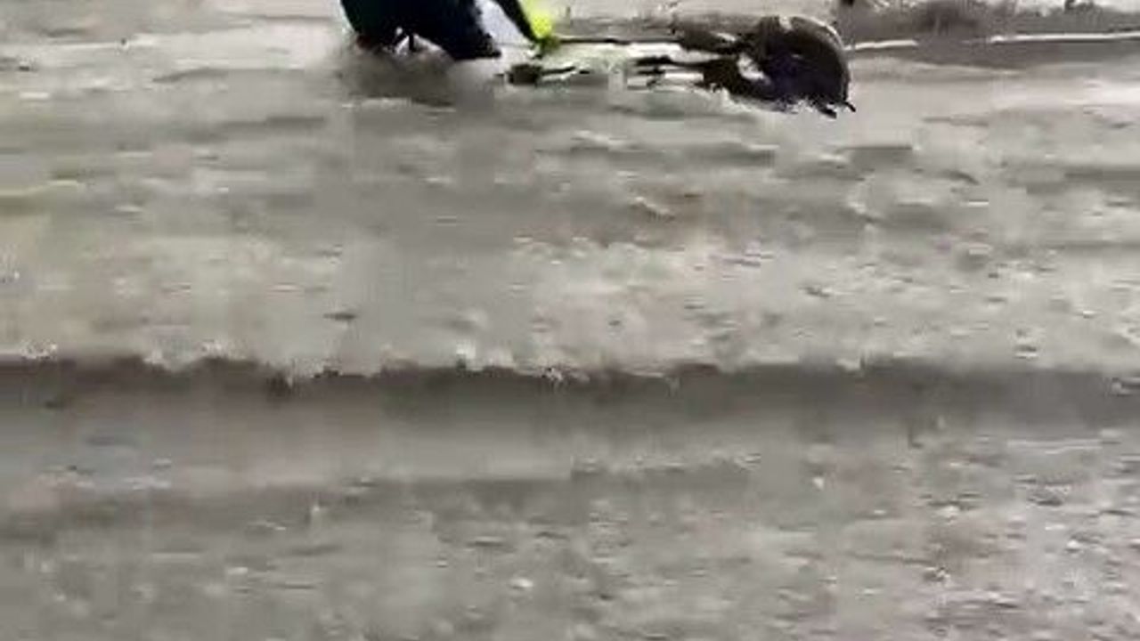 Meteorolojinin uyarılarının ardından İstanbul’da şiddetli yağış etkili olmaya başladı. Küçükçekmece İkitelli’de yollar göle döndü. Seyir halinde olan bir motosikletli ise yere düşerek suda sürüklenmeye başladı. O anlar cep telefonu kamerasına böyle yansıdı.