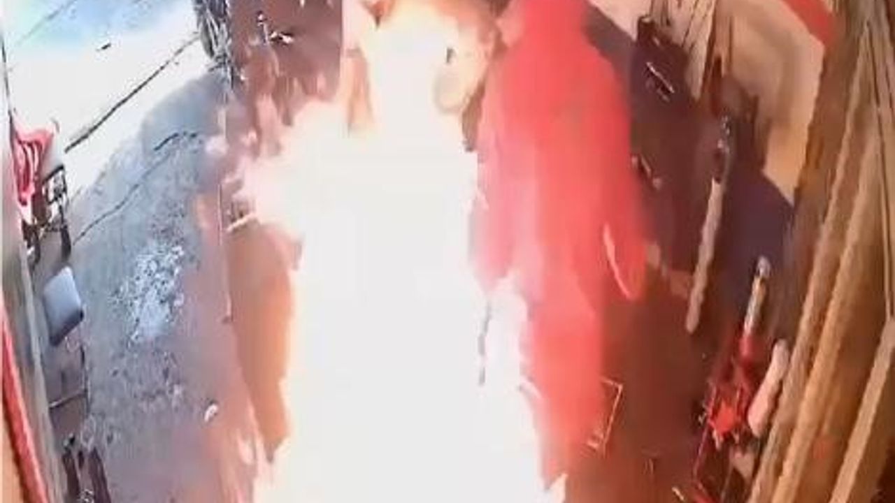 Olay, Sanayi sitesindeki bir tamirhanede meydana geldi. Edinilen bilgiye göre, bozulan motosiklet tamir için bir iş yerine götürüldü. Burada arızanın nedenini bulmak isteyen 2 kişi, elektrik kablolarını kontrol ettiği sırada motosiklet alev aldı. Şahıslardan biri yangını söndürmek için şişenin ağzını açarak yanıcı maddeyi alevin üzerine serpti. Yanıcı maddenin bir anda parlamasıyla birlikte alevlerin arasında kalan 2 kişi koşarak dışarı kaçtı. Şahıslardan biri yine alevi söndürmek için battaniye attı fakat o da tutuşarak yanmaya başladı. Diğer esnafların yangın tüpü ile müdahale ettiği alevler kontrol altına alınarak söndürüldü. O anlar güvenlik kameralarına saniye saniye yansırken motosiklette ve iş yerinde maddi hasar meydana geldi.